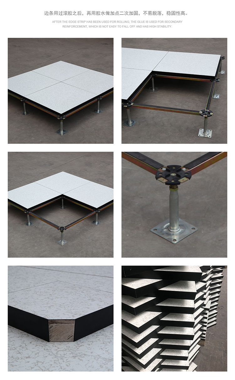 硫酸鈣防靜電地板采用硫酸鈣為基材,地板上面用防火板HPL/PVC/陶瓷地板等裝飾面層,下面用鍍鋅板或壓花鋁合金粘合,四周用PVC導(dǎo)靜電封邊,地板不易受潮,不易變形,耐燃燒時(shí)間更長(zhǎng),使用壽命長(zhǎng),安裝好的地板下面形成通路,方便下面地板走線,線路檢修。地板無(wú)需除油磷化噴塑,平整度好、邊不反翹,環(huán)保、強(qiáng)度大,密封性及穩(wěn)定性好。